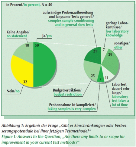The survey presented by AFC shows clearly that today’s analysis methods used to detect the presence of mycotoxins fail to meet the requirements for adequately keeping the risk of the poisons under control! Current test methods, such as Elisa, Dipstick and HPLC procedures, require complex sample treatment and are time-consuming. Moreover, the tests used are either unable to deliver exact measurement values or are much more expensive if obtaining valid measuring results is a priority. As a response to this unsatisfactory cost-benefit ratio, interviewees wished for improved quick-analysis methods that deliver reliable results and are easy to use (see Figure 1).