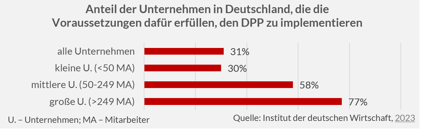 Eine Herausforderung für Unternehmen sei vor allem die Ungewissheit über die konkreten Anforderungen an die Produkte, die auch eine frühzeitige Vorbereitung für Unternehmen erschwere. Laut Wirtschaftsverbänden stelle zudem die notwendige Umstrukturierung des Datenmanagements zur Einführung des DPP die gesamte Lieferkette vor konzeptionelle und finanzielle Herausforderungen. Mit Blick auf mittelständische Unternehmen werden Stimmen aus der Forschung laut, dass die Machbarkeit der „Green Deal“-Gesetzgebung für diese zu wenig berücksichtigt würde.