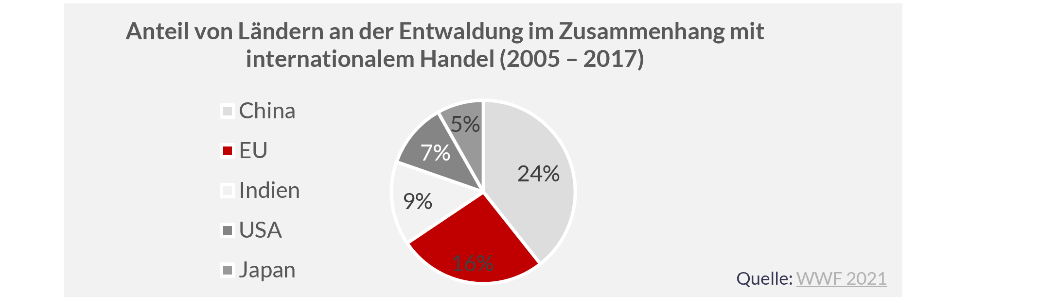 Die vom EU-Parlament bereits im April beschlossene Verordnung zu entwaldungsfreien Lieferketten wurde nun vom Europäischen Rat verabschiedet. Die Verordnung soll sicherstellen, dass die Produktion von Agrargütern, die auf dem europäischen Markt gehandelt werden, keine weitere Zerstörung von Wäldern verursacht. Bisher waren die internationalen Handelsaktivitäten der EU mitverantwortlich für den Klimawandel und den Rückgang der Biodiversität, allein zwischen 2005 und 2017 waren 16 % der gerodeten Waldflächen weltweit auf EU-Handelsaktivitäten zurückzuführen. Zukünftig sollen in die EU daher nur noch Produkte eingeführt werden dürfen, welche auf Flächen erzeugt wurden, die nach dem 31. Dezember 2020 nicht mehr entwaldet wurden. Die Verordnung betrifft entwaldungstreibende Rohstoffe wie Soja, Palmöl, Kakao und Kaffee sowie verarbeitete Produkte wie Schokolade und tritt nach einer Übergangsfrist, für große Unternehmen ab Dezember 2024 und für kleine Unternehmen ab Juni 2025, in Kraft.