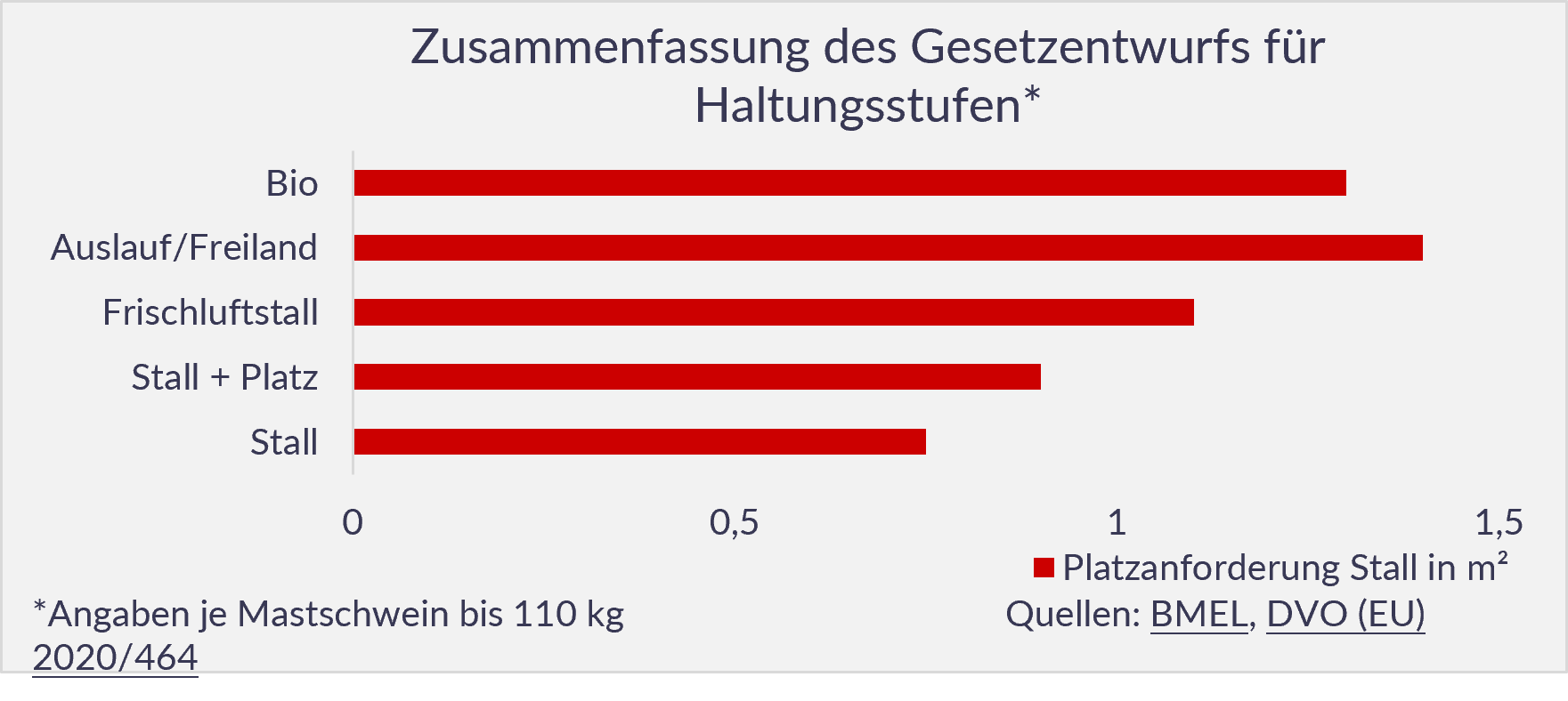 Das Bundesministerium für Ernährung und Landwirtschaft stellte am 07.06.2022 die Eckpunkte für ein Tierhaltungskennzeichnungsgesetz, zunächst für Schweinefleisch, vor. Ziel ist die rechtliche Verpflichtung zur Kennzeichnung von tierischen Lebensmitteln. Eine finanzielle Unterstützung für den Umbau von Ställen für mehr Tierschutz sei laut Bundeslandwirtschaftsminister Özdemir in Planung.
