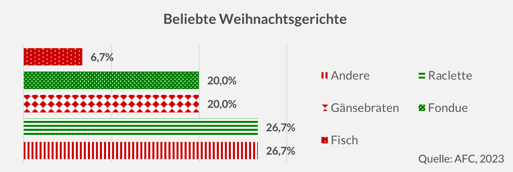 Viele Weihnachtsliebhaber setzen zur Konfliktminimierung auf Tradition und bringen Raclette oder Fondue auf den Tisch. Einige wählen hingegen jedes Jahr ein anderes Gericht, wie auch eine aktuelle interne Umfrage einer Bonner Unternehmensberatung zeigt. Kritische Faktoren wie spezielle Essgewohnheiten und steigende Preise erschweren die Menüauswahl. Auch der Zeitaufwand für die Zubereitung kann im hektischen Weihnachtstrubel zu Stress führen.