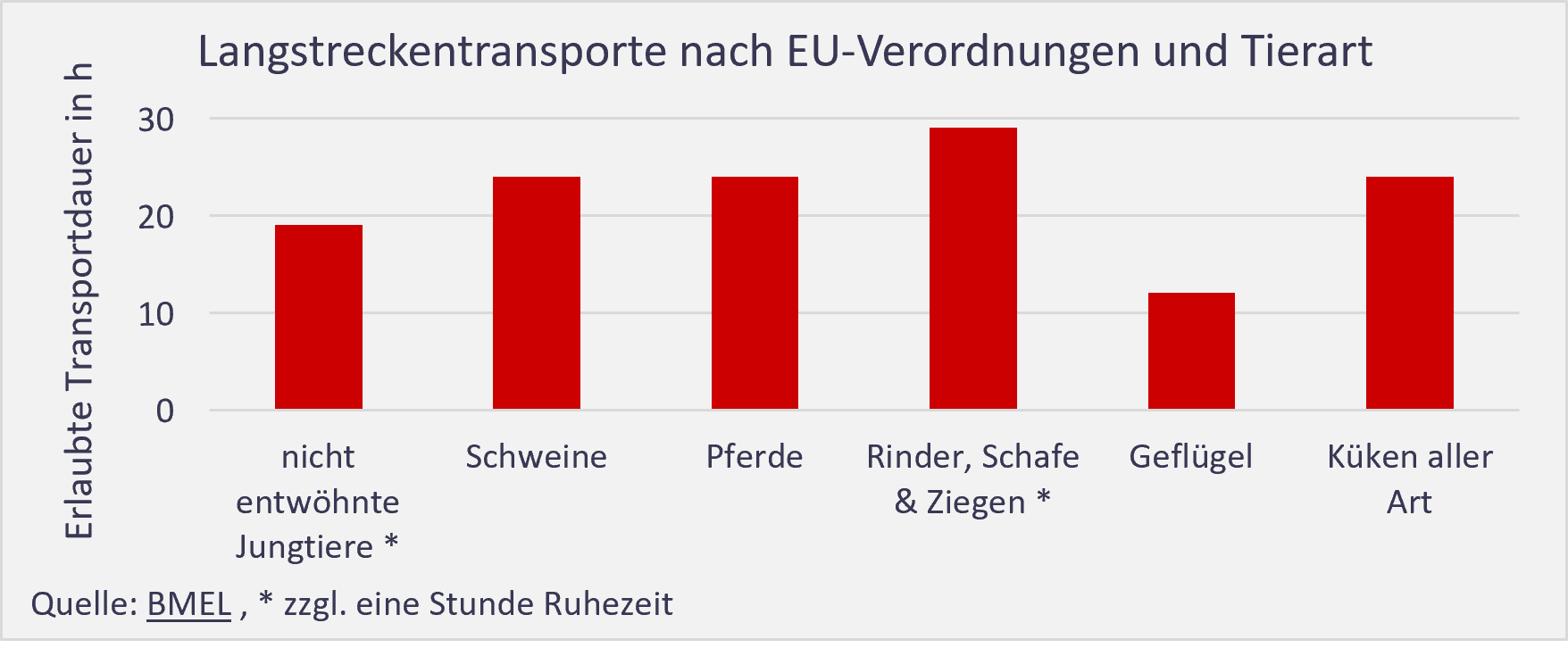 Trotz des bereits bestehenden Tierschutzgesetzes gebe es in der Erzeugung tierischer Lebensmittel viel Tierleid, so eine Recherche von Peta. Kontrollen von Langstreckentransporten von Tieren würden zu selten stattfinden und teilweise schwere Verstöße aufdecken, so Peta. Probleme der Kontrollen seien u.a. ungenau formulierte Richtlinien sowie die hohe Tieranzahl auf den Fahrzeugen, wodurch Kontrolleur:innen nicht alle Tiere begutachten können.