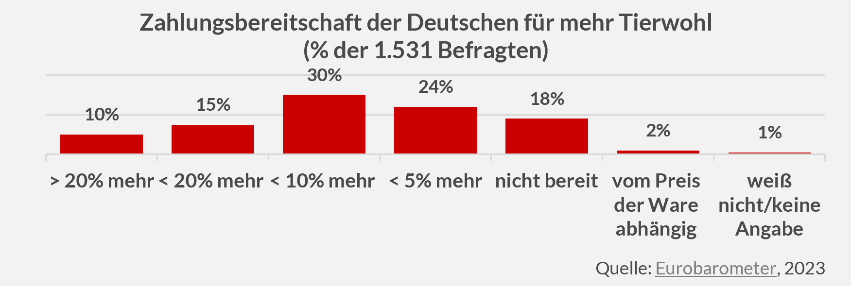 Zahlreiche Tier- und Umweltschutzorganisationen begrüßen das Vorhaben des Bundeslandwirtschaftsministers und werten es als wichtigen Schritt für eine langfristige Finanzierbarkeit des Umbaus der Tierhaltung. Auch viele deutsche Verbraucher seien laut einer Eurobarometer-Umfrage grundsätzlich bereit, für Produkte aus einer Tierhaltung mit höheren Tierwohlstandards mehr zu bezahlen.