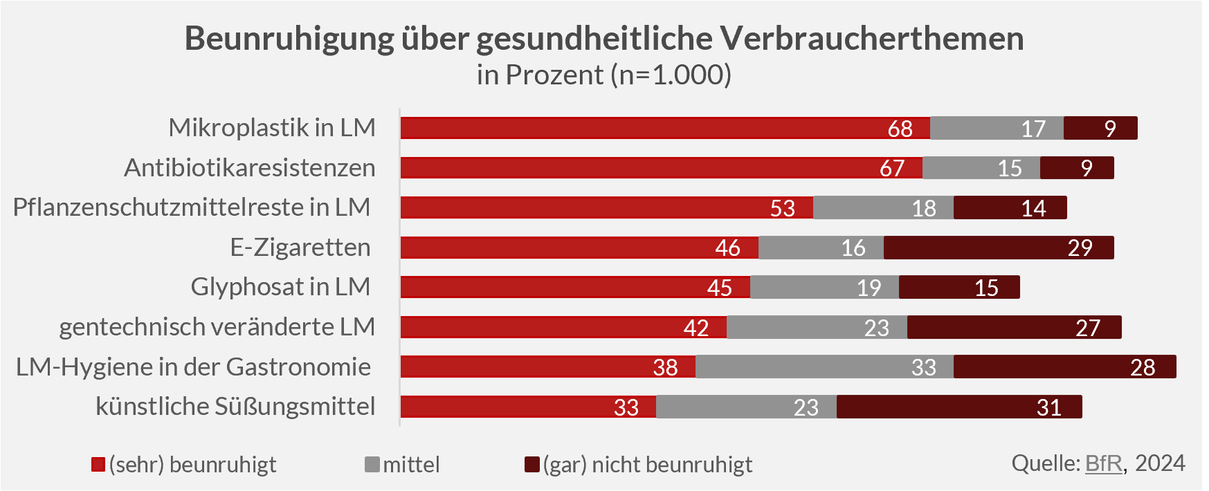 Das Bundesinstitut für Risikobewertung (BfR) betont: Der Nachweis von Rückständen, wie bei Pestiziden und Mineralölen, in Lebensmitteln bedeutet nicht automatisch eine Gesundheitsgefahr. Stattdessen verweist das BfR auf gesetzlich festgelegte Rückstandshöchstgehalte. Zudem betont das Institut fehlende Wirkstoffbezeichnungen und Konzentrationsangaben  in Veröffentlichungen – die Grundlage für die Risikobewertung.