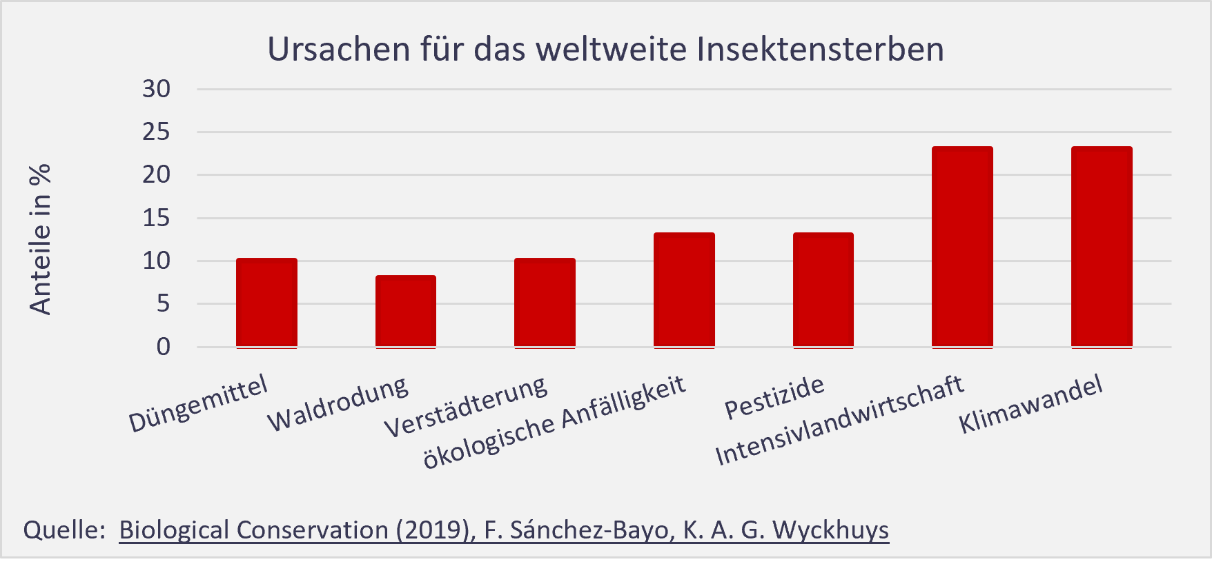 Eine aktuelle in der Nature veröffentlichte Studie hat ergeben, dass die Insektenzahl weltweit um 50 Prozent zurückgegangen sei. Die Artenvielfalt habe einen Rückgang von 30 Prozent erfahren. Die Forscher sind der Ansicht, dass der Rückgang noch drastischer sei als angenommen. Das liege daran, dass teilweise nur begrenzt Daten bezüglich der Insektenpopulation vorliegen würden.